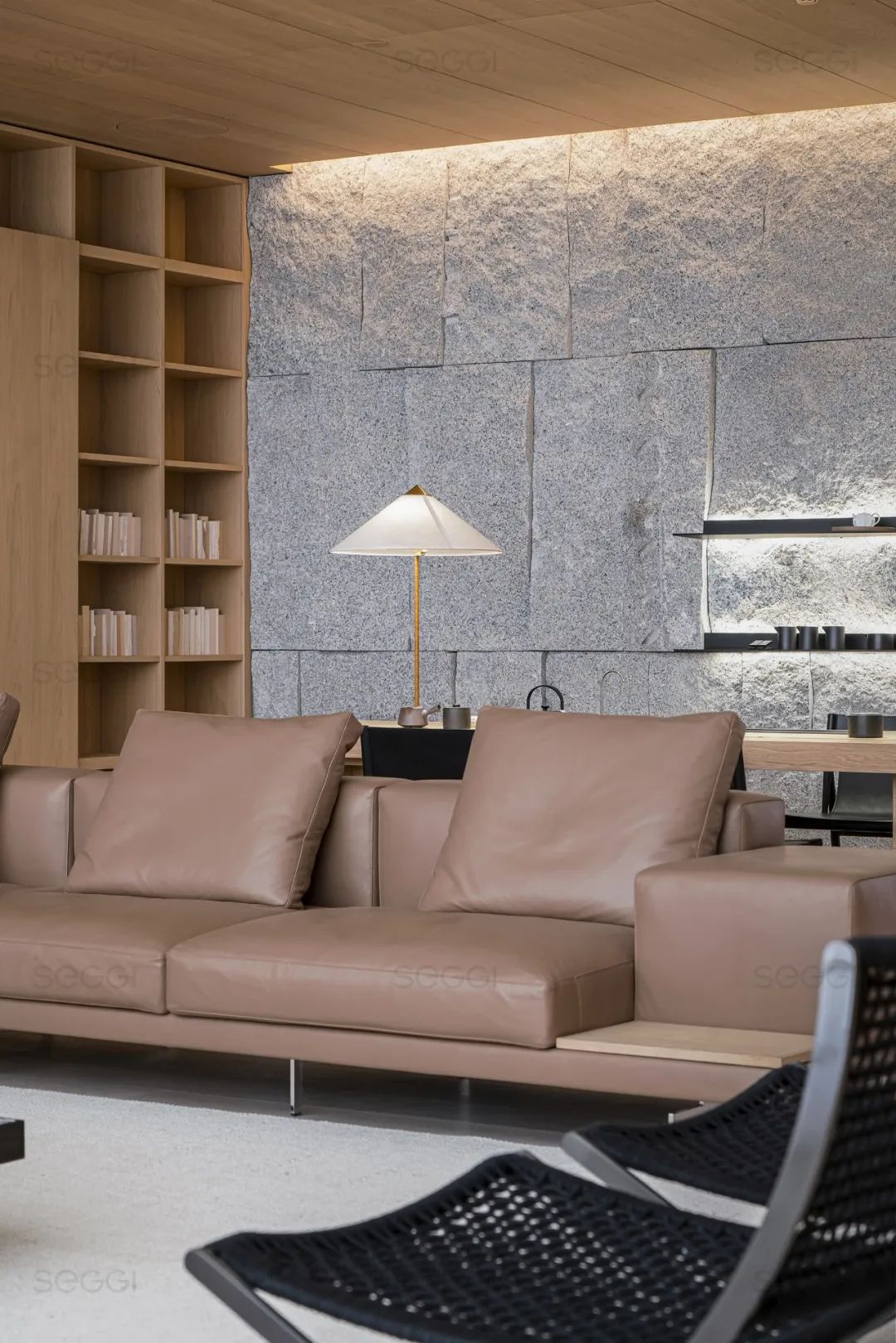 意大利家居品牌「SEGGI·室稷」东莞店,便是以“城市山居”为概念,试图打造一个建筑、自然、人文、艺术与生活融为一体的沉浸式体验空间。期望通过设计,在城市之中探索山居的可能性、延伸语义的丰富性。