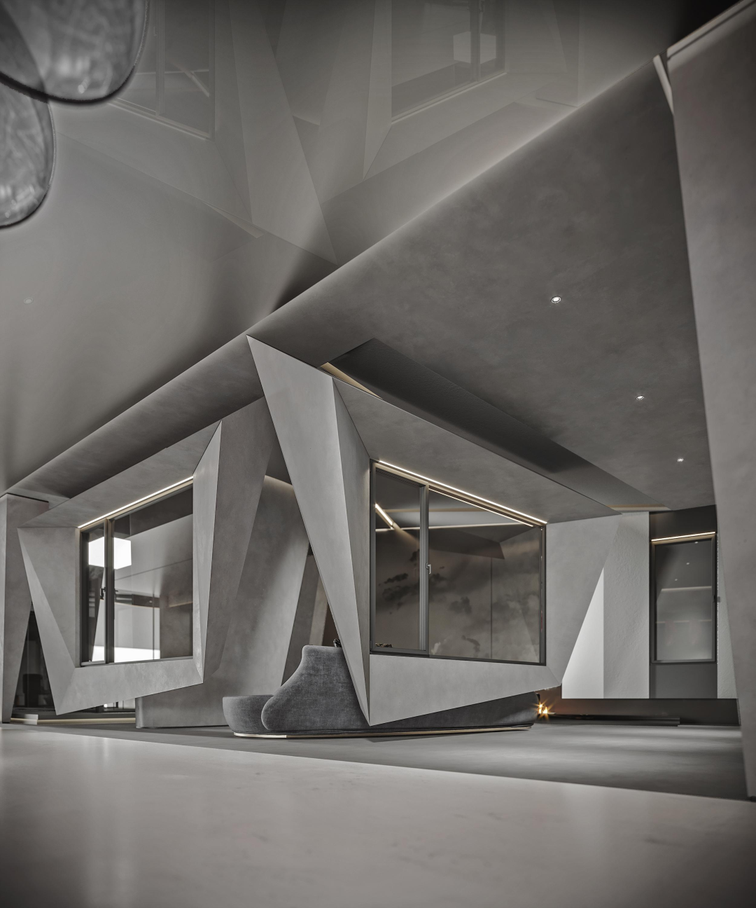 与常规门店不同,欧哲福州未来艺术馆以灰度设计为主基调,采用独具创意的线条切割和几何模块为设计语言,解构传统墨守成规的建筑框架,为未来商业空间揭示了一种全新的可能。